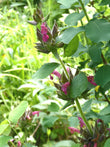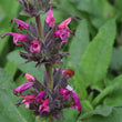 Produces striking reddish-purple flower spikes with aromatic foliage
