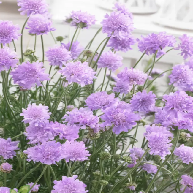 Scabiosa, commonly known as the Pincushion Flower, is a charming and easy-to-grow perennial (often grown as an annual in cooler climates) that produces elegant, dome-shaped blooms resembling a pin cushion. Known for its long blooming period and soft, pastel-colored flowers, it is a favorite among gardeners and pollinators alike. These plants make excellent additions to borders, cottage gardens, and cut-flower arrangements. Their compact form and continuous blossoms make them ideal for both garden beds and containers.