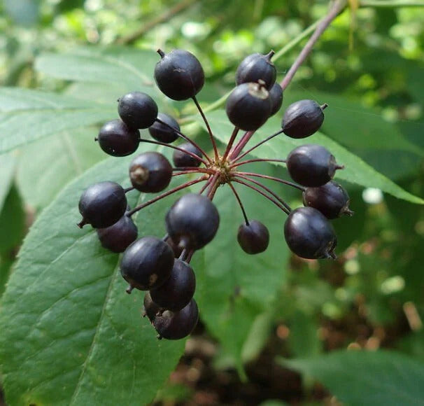 Siberian Ginseng (Eleutherococcus Senticosus), also known as Ci Wu Jia, is a hardy, woody shrub native to Northeast Asia. It is cultivated for its resilient nature and adaptability to cold climates. The plant produces small, greenish flowers and thrives in well-drained soil with partial sunlight. It is well-suited for gardeners seeking a perennial herb that tolerates diverse growing conditions and cooler temperatures.