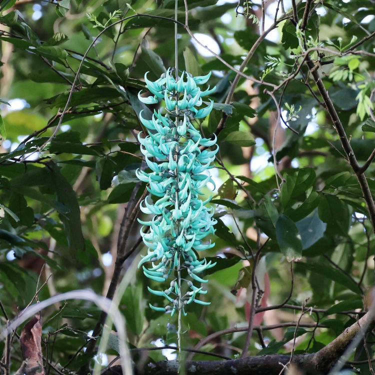 Produces striking jade-green to turquoise flowers in long, cascading clusters.