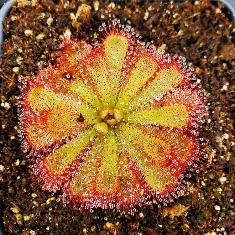 Grow your own captivating Alice Sundew (Drosera aliciae), a stunning carnivorous plant known for its sparkling, dew-covered leaves that naturally attract and capture insects. These Sundew Seeds produce compact rosettes with reddish-green foliage that glistens under sunlight. Perfect for terrariums, greenhouses, or indoor collections, this variety adds both beauty and biological pest control to your space. Easy to grow from seed, it thrives in moist, acidic soil and bright, indirect light.