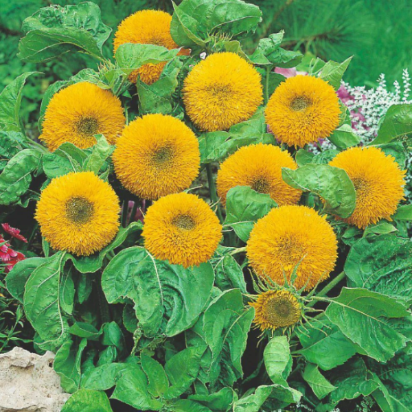 Teddy Bear Dwarf Sunflower Seeds produce compact, bushy plants with fluffy, golden-yellow blooms that resemble plush pom-poms. This charming variety is ideal for small gardens, borders, and containers, offering a cheerful display of vibrant color throughout the summer. The dense, double-petaled flowers make excellent additions to fresh or dried arrangements. Easy to grow and quick to bloom, Teddy Bear Sunflowers are a delightful choice for gardeners of all skill levels.