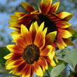 Produces classic sunflower blooms with warm yellow petals and deep brown centers
