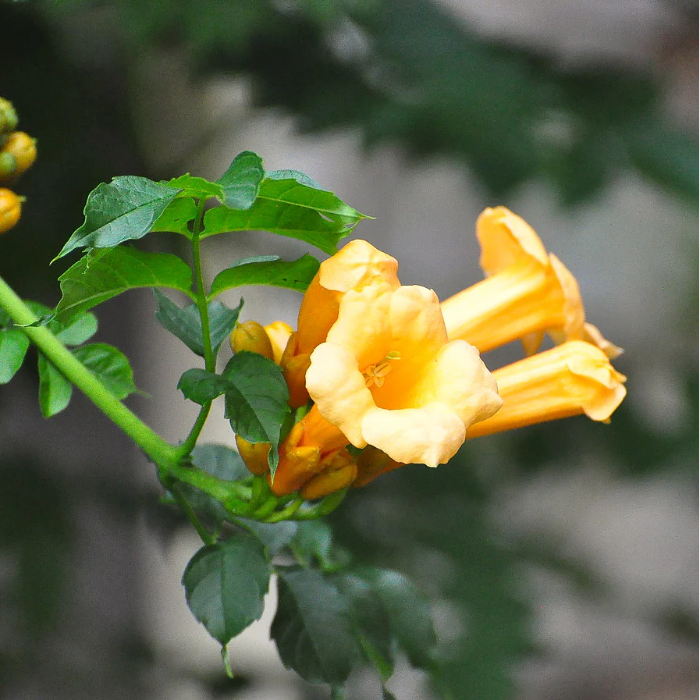 yellow Trumpet Vine is a fast-growing climbing plant admired for its vibrant, trumpet-shaped yellow flowers and lush green foliage. Known for its ability to quickly cover fences, trellises, and walls, this vigorous vine brings a tropical look to gardens and landscapes. Its eye-catching blooms attract hummingbirds, butterflies, and other pollinators, making it a popular choice for eco-friendly gardens. With proper sunlight and minimal care, it rewards gardeners with abundant flowers throughout the warm months.