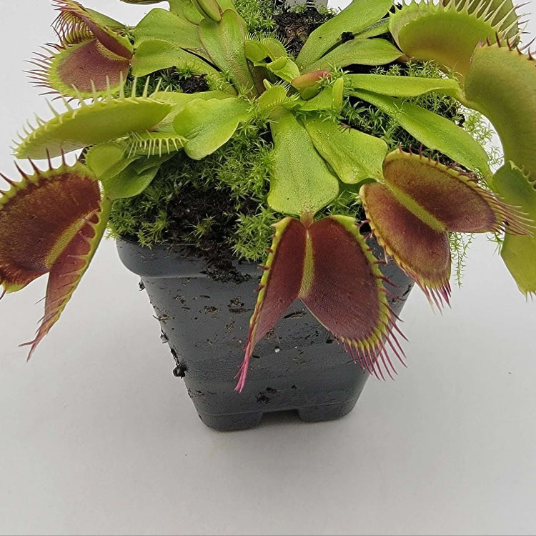 The Venus Flytrap B52 variety thrives in warm, humid conditions and prefers nutrient-poor, acidic soil. Its jaw-like traps are triggered by tiny hairs, snapping shut quickly when prey is detected — a fascinating natural process that makes it an educational and decorative plant for all ages.