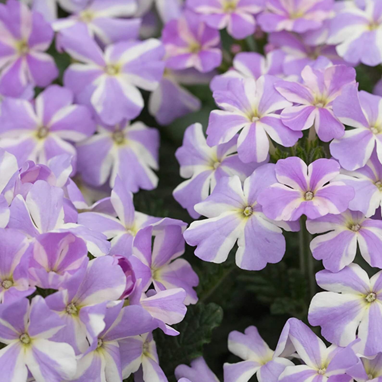 Produces beautiful clusters of lavender and white verbena blooms